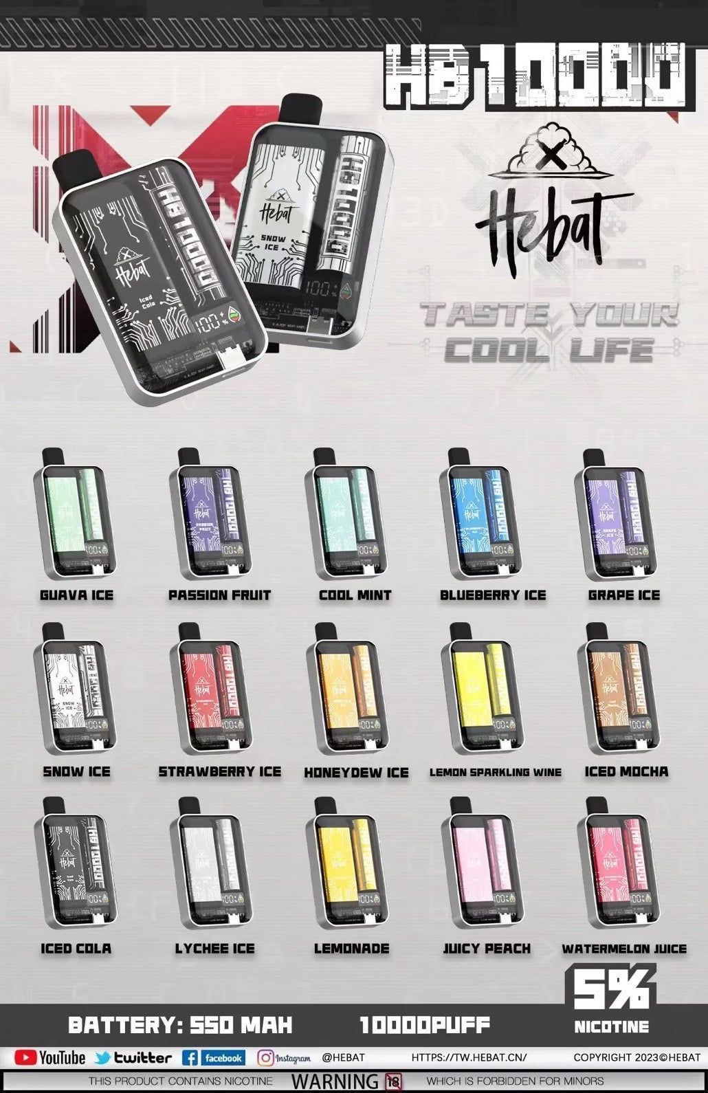 HEBAT喜貝10000口PLUS 超大容量 一次性電子霧化解癮不間斷